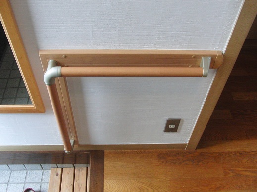 手摺の棒の取付位置は、握った時に軽く肘が曲がる程度が丁度良い高さになります。
