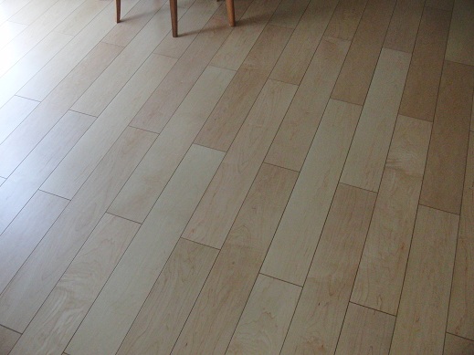 従来の防音フロアーに比べ、広巾の一枚もののため、天然木の風合いがとても良く出ています。