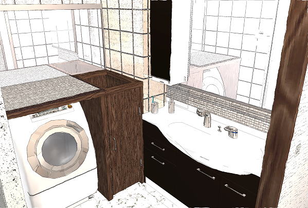 洗面化粧台の隣は洗濯機置き場になっています。壁を新造し仕切る事で個室感覚な