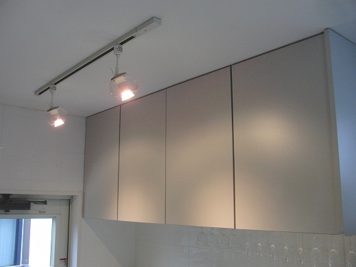 キッチン作業台側への明かりは、天井にライティングダクトレールを取り付けて